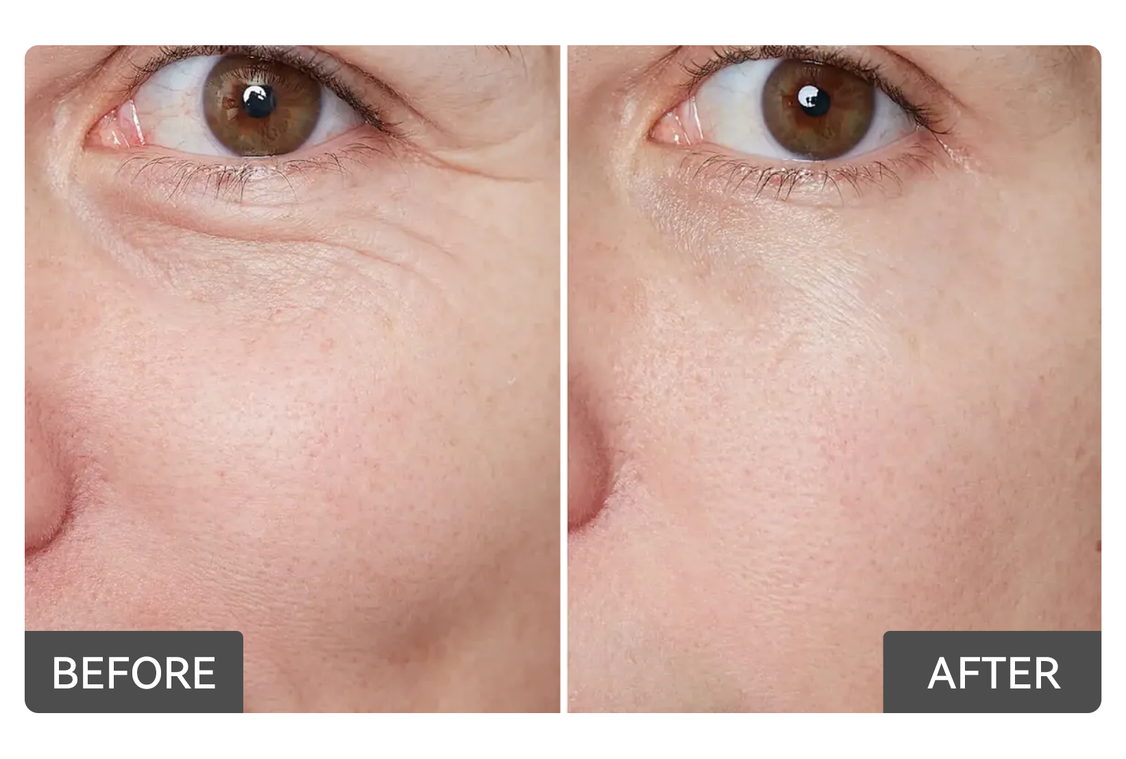 Many users notice the eye area feeling more hydrated and smoother within days. With regular use over several weeks, the collagen-supporting formula helps improve elasticity, density, and visible firmness for longer-term results.